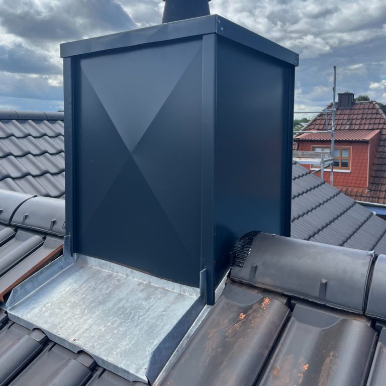 Auch Blecharbeiten wie Kamineinfassungen, Anschlussbleche, Traufbleche, Ortgangbleche und vieles mehr bieten wir an.