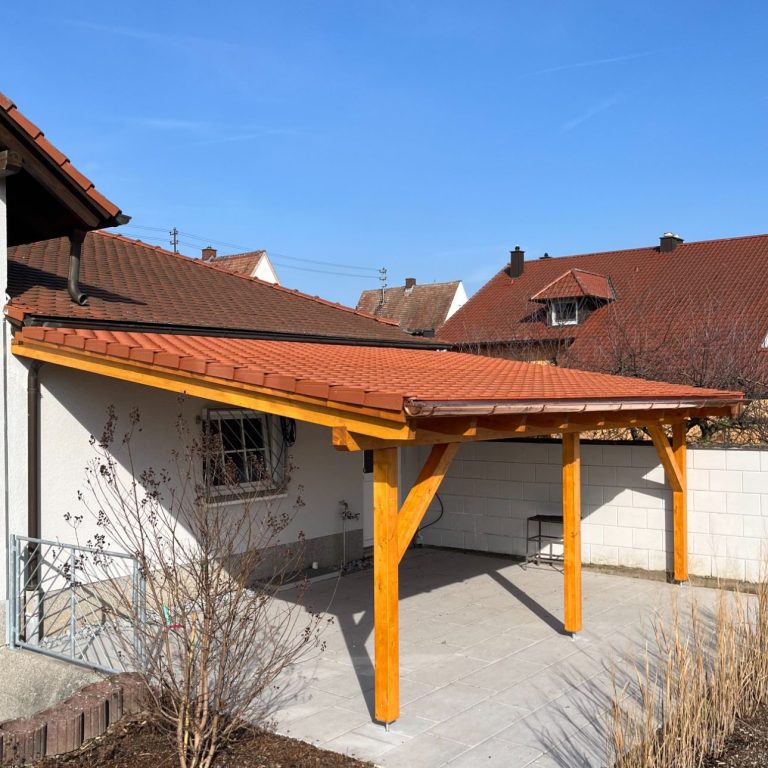 Wir als Zimmerei bieten Ihnen natürlich auch sichtbare Holzbauten wie ein Carport oder eine Terrassenüberdachung sowie Wände oder gleich ganze Anbauten aus Holz an.